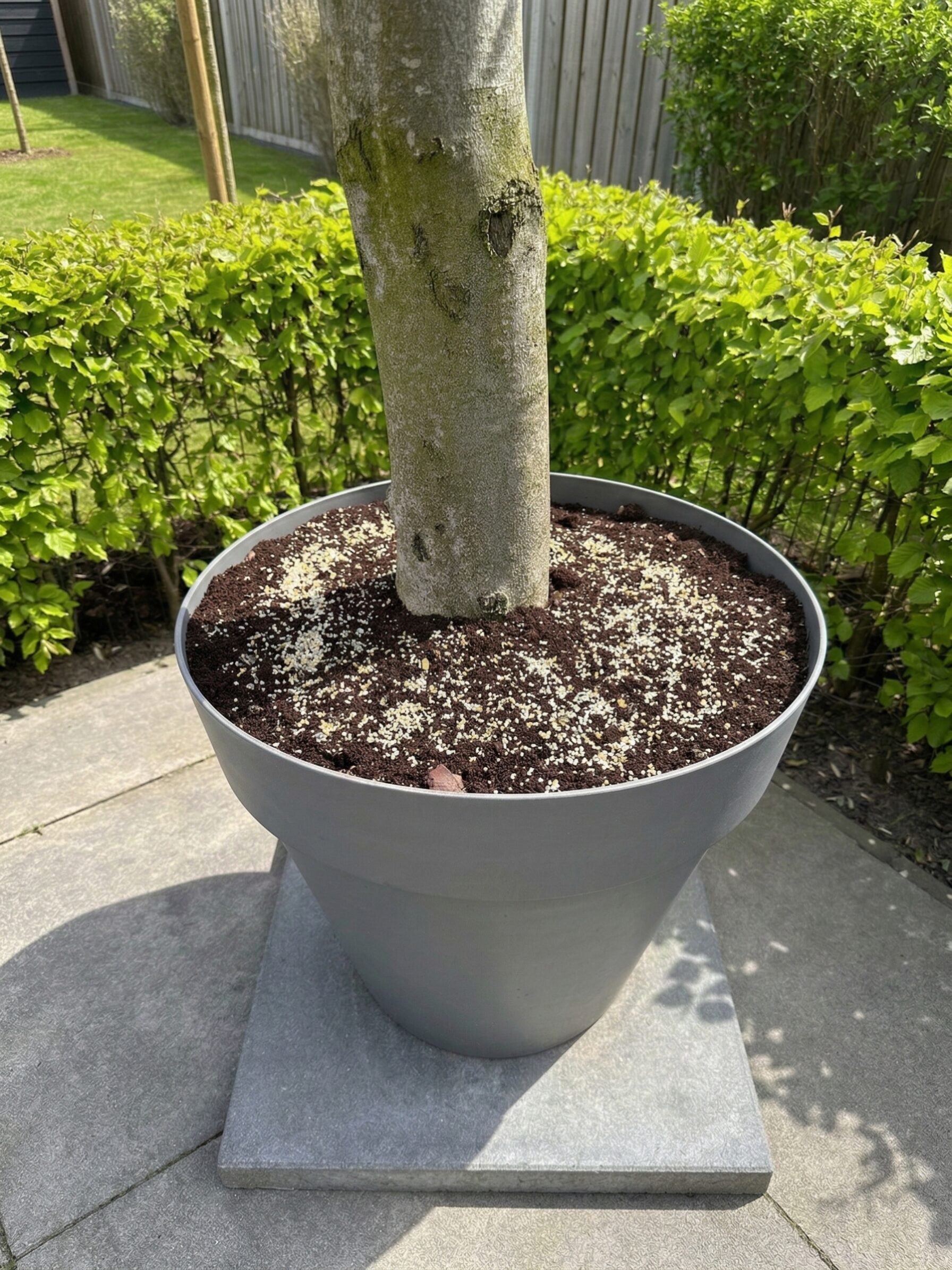 - Die Frühjahrskur (März/April): Sobald die Temperaturen steigen, streust du das Granulat gleichmäßig um den Stamm. Dies gibt dem Baum den nötigen „Kickstart“.